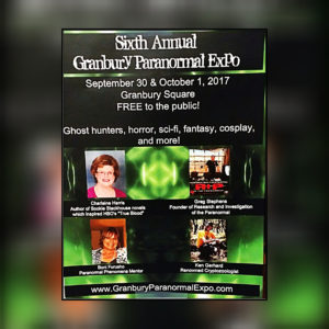 Granbury Paranormal Expo will be held Saturday, September 30 from 10 AM to 7 PM and Sunday, October 1 from 10 AM to 5 PM